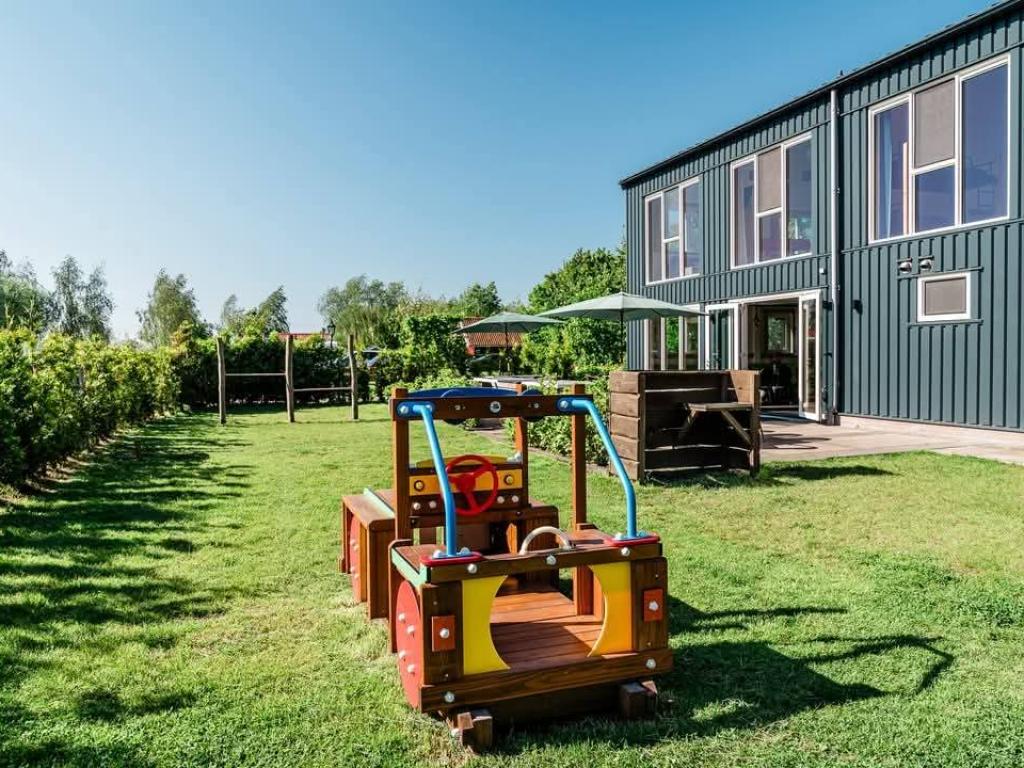 Direct naast het verblijf staan twee speeltoestellen, en op het kampeerterrein vinden kinderen nóg meer avontuur: een piratenschip, schommels, glijbanen, speelhuisjes, skelters, trekkers en nog veel meer.
