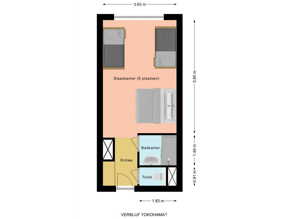 3 slaapkamers op de begane grond met gedeeld sanitair